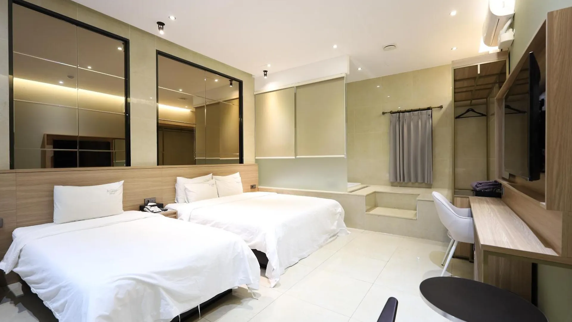 アーモンド ホテル プサン ステーションの客室には無線LAN、座席 と防音窓が備わり、一続きのバスルームも備わっています。